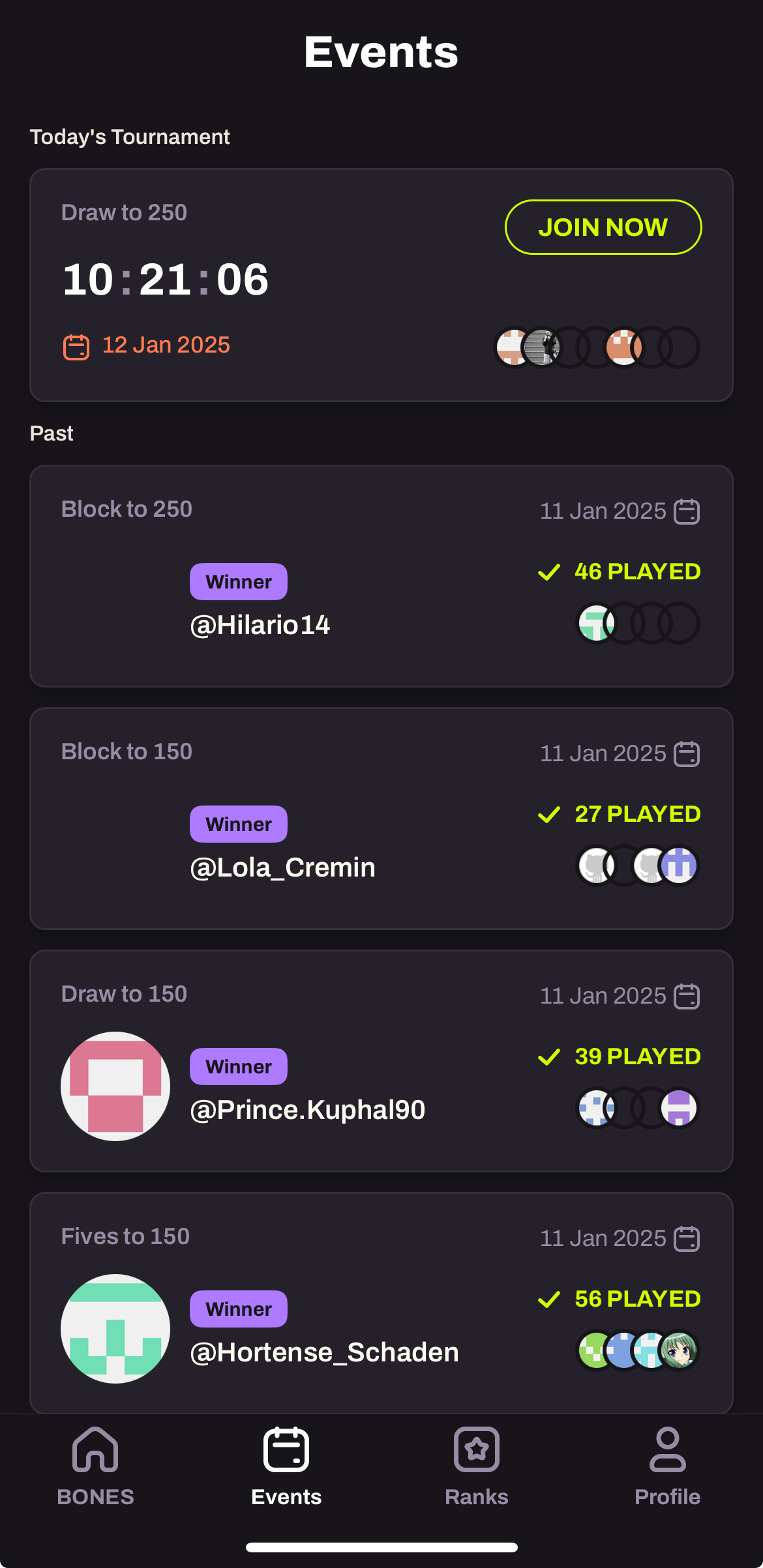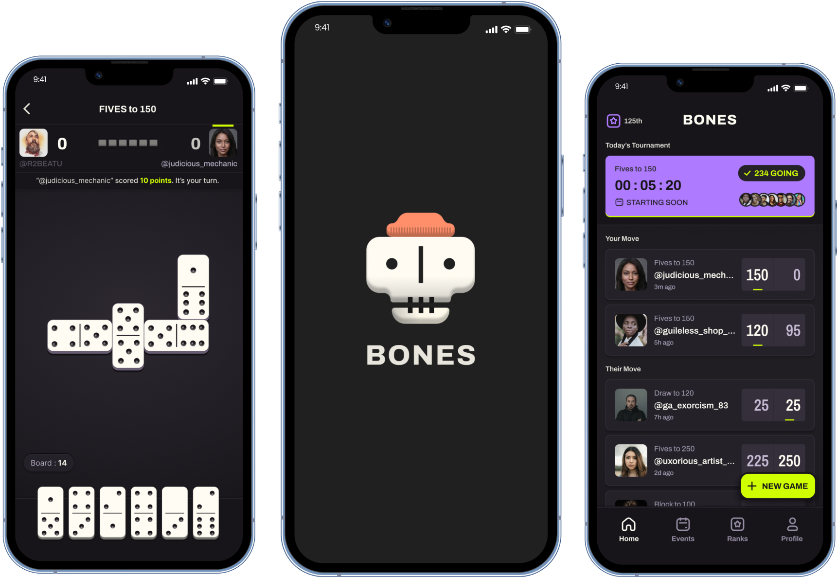 Bones is a dominoes app featuring live tournaments that pays cash prizes to winners.